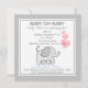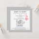 Invitación a la ducha de bebé de elefantes dulces con un patrón de chequeo de gingham gris y corazones rosados.
