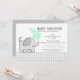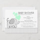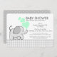 Invitación Elephant Neutral Mint y Gray Gingham Baby Shower