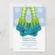 Botas de elfo cortas y coloridas y medias de rayas verdes y azules sobre el fondo de un copo de nieve invitaciones personalizadas de Navidades del arte original de Ricaso© http://Delightful-doodles.com