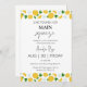 ¡Celebremos a la futura novia con un toque refrescante! Nuestra invitación a la ducha de novia "She Found Her Main Squeeze" presenta un diseño encantador con limones jugosos, perfecto para una ducha con temática de cítricos de verano. Los tonos amarillos y alegres de la fruta evocan un ambiente mediterráneo alegre, ideal para un brunch luminoso y aireado. Esta invitación seguramente marcará el tono de una celebración llena de diversión que hará que todos estén llenos de emoción por el gran día.