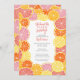 Frutos de cítricos caprichosos en los colores de limón, rosa, coral, naranja y pomelo rojo rubí. Las rodajas de cítricos dibujadas a mano incluyen una textura pintada con acuarela para añadir jugosa a una colorida invitación a la ducha de boda.