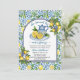 Un elegante diseño Bridal Shower con fondo de azulejos azules y limones.