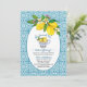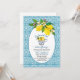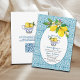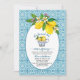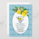 Elegante Bridal Shower de diseño con fondo de azulejos azules y una taza de limones.