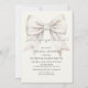 Ella está atando el nudo blanco arco de la novia Invitación a la ducha