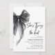 Añade un toque de elegancia a tu celebración con esta plantilla de invitación a la ducha de novia Bow negra. Con un arco azul moda y suaves tonos neutros, fiesta de ducha de novia 'She's Tying the Knot', moda y moderna ducha de novia