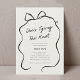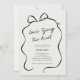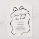 ¡Está atando el nudo, y es hora de celebrar! Esta hermosa invitación a la ducha de novias tiene un elegante arco negro y cinta de correr, simbolizando el vínculo especial del matrimonio. El caprichoso guión manuscrito añade un toque divertido y romántico, lo que crea el tono perfecto para una reunión elegante y memorable. Ya sea que elija una versión impresa o un archivo digital, esta invitación es totalmente personalizable con los detalles del evento para satisfacer sus necesidades. Sofisticado pero divertido, es la forma perfecta de invitar a los huéspedes a ducharse con la futura novia con amor y alegría. ¡Pida la tuya hoy y haz que la ducha de novia sea una que recordar!