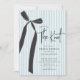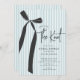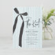 Eleva tu ducha de novia con nuestra moderna invitación a rayas grises y blancas, diseñada para impresionar. Con una moda de coqueta negra con lazo de coqueta, esta invitación exuda elegancia, mientras que el fondo de rayas azules preppy añade un toque de sofisticación. Perfectamente diseñado para marcar el tono de su día especial, invita a sus invitados a celebrar su historia de amor con estilo.