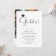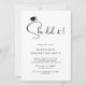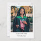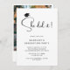 Esta moderna y mínima invitación a la fiesta de graduación en blanco y negro incluye "She did it" en un guión elegante, una tapa de grad, una tipografía simple y una opción para agregar tu foto al fondo.