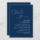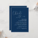 Esta es la tarjeta de invitación de la fiesta de elopamiento de boda, con diseño de escritura Navy Blue minimalista / minimalista elegante (Celebra con nosotros)