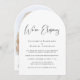 Elegante invitación en forma de arco y invitación a la boda con "We're Eloping" mostrada en un guión de moda, sus nombres en elegante tipografía serif y los detalles de la invitación a la recepción con letras modernas y sencillas. En la parte posterior, cargue su foto e introduzca la dirección de su sitio web boda para crear un código QR para que sus invitados puedan escanear en línea a RSVP y obtener detalles del boda.