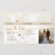 Invitación a un boda de pases de embarque con un mapa del mundo de destino, pase de Boda, boda de destino, pasaporte con tarjeta Rsvp de código QR.