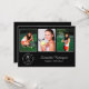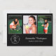 Personalice su fiesta de graduación con invitaciones personalizadas. Reemplace las 3 fotos de muestra con las suyas. Agregue el año al elegante emblema negro debajo de las fotografías en la parte frontal que dice "GRADUADO DE LA PROMOCIÓN DE [AÑO]" con el nombre de su graduado y la escuela al lado en elegantes fuentes de escritura blanca y serif. Reemplace el texto de muestra blanco en la parte negra de la invitación para su evento. Personalícelo para cualquier graduado: escuela secundaria, universidad, escuela de posgrado, facultad de derecho, facultad de medicina, escuela de oficios.