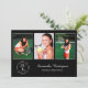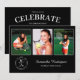 Personalice su fiesta de graduación con invitaciones personalizadas. Reemplace las 3 fotos de muestra con las suyas. Agregue el año al elegante emblema negro debajo de las fotografías en la parte frontal que dice "GRADUADO DE LA CLASE DE [AÑO]" con el nombre de su graduado y la escuela al lado en elegantes fuentes de escritura y serif blancas. Reemplace el texto de muestra blanco en la parte negra de atrás de la invitación para su evento. Personalícela para cualquier graduado: escuela secundaria, universidad, escuela de posgrado, facultad de derecho, facultad de medicina, escuela de oficios.