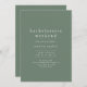 Esta moderna y sencilla invitación de fin de semana de soltera de montaña de la Emelia Collection es perfecta para una fiesta de soltera de madera. El diseño de color verde sabio oscuro presenta una tipografía rústica y sencilla con un ambiente montañoso de bosques. Personaliza la invitación de tu soltera con el itinerario del fin de semana e información adicional.