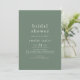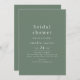 Esta sencilla y moderna ducha de novia rústica de montaña de la Emelia Collection es perfecta para una ducha de boda de madera. El diseño de color verde sabio oscuro presenta una tipografía rústica y sencilla con un ambiente montañoso de bosques.
