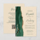 This elegant modern wedding invitation features an emerald green watercolor agate border trimmed with faux gold glitter. The customizable text combines green handwriting, copperplate and italic fonts on a champagne beige background. Add additional details on the back, along with a QR code to help your guests visit your wedding website.