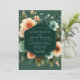 This sophisticated design features a moody and romantic atmosphere. Painterly blooms in soft apricot, peach, and pale mint green hues emerge gracefully from a deep emerald background. The artistic and dramatic floral arrangement evokes a sense of timeless elegance, perfect for a lush, fine art affair.