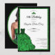 This elegant emerald green 18th birthday debut invitation has a green printed glitter dress, a tiara crown, and a custom photo on the back with a personalizable template to create your own invitation. The template is customizable in the listing editor and is also available as a digital download that's printable after you personalize it. It's a formal and elegant design for a milestone birthday.