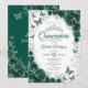 Invitación Emerald Green Silver Floral Quinceanera