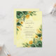 This watercolor design features lush emerald green roses paired with sunny yellow ranunculus blossoms. Verdant foliage and delicate leaves surround the edges, set against a soft pale yellow watercolor background. The vibrant color palette creates a cheerful and sophisticated mood for a seasonal marriage.