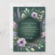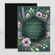 An enchanting design featuring a lush arrangement of watercolor florals. Delicate lilac sprigs and soft purple anemones bloom against a deep emerald green background. Verdant foliage and subtle botanical accents create a romantic and elegant atmosphere. This sophisticated composition is perfect for a nature-inspired union.