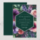 Embrace a dramatic and artistic atmosphere with this opulent botanical design. A stunning jewel-toned palette features deep emerald green, rich plum, and vibrant amethyst. Painterly anemones, lush roses, and delicate lilac blossoms create a sophisticated and moody floral arrangement against a dark background.
