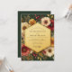 Evoke a sense of opulent romance with this stunning botanical design. A deep emerald green background provides a dramatic canvas for a lush arrangement of florals. Creamy peonies, golden yellow roses, and rich crimson anemones bloom alongside vibrant red berries and delicate greenery. This moody and elegant composition is perfect for an autumn or winter union.