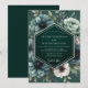 Embrace a sense of sophisticated romance with this stunningly artistic floral arrangement. A deep emerald green background provides a dramatic canvas for lush blooms in shades of moody teal, dusty blue, and soft sage. Painterly anemones, delicate roses, and ivory blossoms intertwine with verdant foliage, creating an elegant composition.