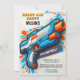 ¡Prepárate para la acción! Esta invitación a los 9 años de estilo neón divertido y fresco incluye blasters de Nerf, objetivos y energía atrevida "Game On" en un diseño de acuarela vibrante. Perfecto para un fiesta lleno de municiones, inspirado en el ejército, con un resplandor retro. ¡El espacio de texto de personalizable facilita la personalización de tu héroe de cumpleaños! Divertirse