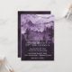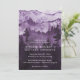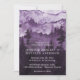 Sorprendente tono de joya morada con montañas negras con siluetas negras de abetos. Perfecto para una boda de destino de montaña/al aire libre/lodge. Los cuadros de plantilla son fáciles de personalizar con su propia información.