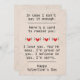 A veces las palabras son difíciles de encontrar. Esta tarjeta El día de San Valentín cierra la brecha para aquellos que tienen problemas para comunicar sus profundas emociones. Con el mensaje "En Funda no lo digo lo suficiente, aquí hay una tarjeta para recordarte: te amo. Eres Sexy. Estoy orgulloso de ti. Creo En Ti. Lo siento," esta carta no deja lugar a dudas sobre tu amor y aprecio. Un regalo perfecto para tu marido, novio, novia o pareja.