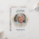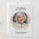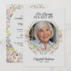 Esta celebración de "En amorosa memoria" del servicio, o invitación a funeral o servicio conmemorativo (disponible como descarga digital instantánea o tarjetas impresas) es una forma hermosa y serena de honrar la vida de un ser querido. La parte delantera de la tarjeta presenta un diseño suave e invitador con una foto de su ser querido, enmarcada por una delicada corona de flores silvestres de acuarela en vibrantes tonos rosados, amarillos y azules, y follaje. Sobre la imagen, las palabras "En amorosa memoria" están elegantemente escritas a mano, con el nombre de su ser querido en una elegante letra y sus fechas de nacimiento y defunción se muestran a continuación, creando un tributo conmovedor y emotivo. La parte trasera de la tarjeta continúa el tema floral, con un borde coordinado de flores silvestres de acuarela que enmarca los detalles de la invitación. El texto se presenta en una fuente clásica serif, invitando a amigos y familiares a unirse a la celebración de la vida, funeral, recuerdo o servicio conmemorativo. El borde de flores y hojas añade un toque de la belleza natural y calidez de un jardín, complementando perfectamente el tono suave y reflexivo de la tarjeta. Este diseño no solo es una forma reflexiva de conmemorar a su ser querido, sino que también sirve como un hermoso recuerdo para aquellos que asisten al servicio, ofreci