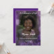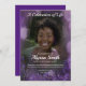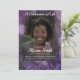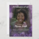 Invitación o invitación para un funeral, servicio conmemorativo o celebración de la vida. Con un revestimiento de flores púrpura para tomar una foto de su elección.