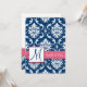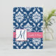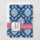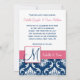 Estilosas invitaciones de boda en formato vertical rectangular con patrón de damasco blanco y azul de la Marina, Monograma, Nombres con colores de énfasis rosado. Diseño de la invitación a la boda por Elke Clarke ©2009. Gráficos con licencia de uso. Personalizar con su monograma, nombres e información de invitación a la boda. Además, elija entre una variedad de fuentes y hermosos papeles para hacer FABULOUS sus invitaciones de boda! Póngase en contacto con nosotros para obtener información sobre las alteraciones de los colores en luxuryweddinginvitations@gmail.com
