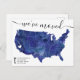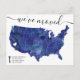 Mapa de EE.UU. invitación móvil del corazón blanco con acuarela azul marino, mover el corazón a su estado, el color del mapa es completamente personalizable.