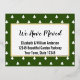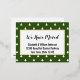 Un patrón de árboles blancos de Navidad está en esta oscura invitación en movimiento de las vacaciones verdes. La línea superior del texto para mostrar es un guión negro que actualmente dice 'Nos hemos mudado'. Puede editar el texto si lo desea. Hay tres líneas de texto en negro en la parte inferior para tu nombre y nueva dirección. El texto está dentro de un rectángulo blanco que tiene un borde dorado.
