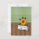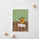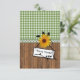 Que sus amigos y familiares sepan que se han mudado a una nueva residencia enviando una invitación de estilo rústico con vigas rústicas en el fondo y un patrón de gingham verde en la parte superior y un cartel decorado con un girasol amarillo brillante que dice: Nos hemos mudado.