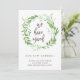Esta elegante tarjeta de cambio botánico presenta una corona verde de hojas, sobre un fondo blanco limpio. Hemos usado arte de LABFcreations.