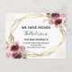 Moderno y elegante Relieve metalizado dorado Floral Faux Geometric Watercolor Primavera Borgoña y Rubor Flores Florales Rosadas Hemos movido nuevas casas o nuevas tarjetas de direcciones - incluye una bella y elegante tipografía de escritura con floral y verde moderno para la celebración especial Nueva Casa o Nueva Dirección.