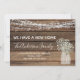 Madera rústica de granja, luz de cuerdas y barra de flores de aliento del bebé Hemos movido nuevas casas o nuevas tarjetas de dirección - incluye hermosa y elegante tipografía de escritura con floral moderna para la celebración especial Nueva casa o Nueva dirección.