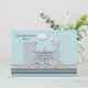 Enmarcada con un fondo azul claro es una encantadora silueta de un motor de tren. Está en vías y tiene una cruz azul que puede ser más grande o más pequeña, arrastrada a cualquier lugar o eliminada, haciendo de esto una invitación versátil para ocasiones religiosas o cumpleaños.La tarjeta es fácil de personalizar con su redacción, fuente, color de fuente y elección de seis tipos de papel.