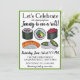 La invitación presenta una ilustración original a mano de una variedad de rollos de sushi maki japoneses, con VAMOS A CELEBRAR en una fuente divertida. Ideal para celebrar una graduación, ascenso o evento de felicitación. Solo personalice con su información.