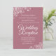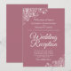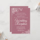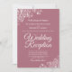 Estas hermosas invitaciones para la recepción de la boda están diseñadas para los invitados que están invitados a la recepción pero no a la ceremonia, cuentan con un hermoso fondo de color rosa polvoriento o rosa malva con volantes de encaje blanco ornamentado en las esquinas. La tipografía incluye letras de escritura elegante para un estilo que es a la vez simple y elegante. Simples, elegantes y con estilo, estas invitaciones son una forma maravillosa de pedirle a sus amigos y familiares que compartan su alegría en su día especial.