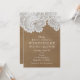 Invitación Encaje Blanco y Suede Marrón Boda Rústica Chic