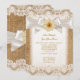 Invitación Encaje de Crema de Arpillera Rústica, Lazo de Flor