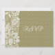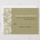 Tonos beige naturales elegantes, aspecto de arpillera de lino y diseño de encaje floral blanco vintage, tarjeta de RSVP de boda.