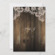 Así que se han casado en una ceremonia privada pero ahora quieren compartir su felicidad con familiares y amigos. Estas invitaciones solo para recepción son perfectas para una celebración de boda rústica o al aire libre con un toque campestre. La madera oscura de granero antiguo con un delicado patrón de encaje superpuesto mezcla lo rústico y lo romántico vintage para crear una invitación única. La parte posterior es de madera de granero con una parte superior de encaje y sus iniciales. Estas son perfectas para la novia con un presupuesto limitado porque pueden incluir la información de RSVP en la tarjeta. Hay un RSVP separado disponible. Si desea este diseño en otro producto, o necesita ayuda de alguna manera con la personalización, por favor contácteme en shutterbug600@yahoo.com