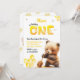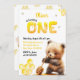 Invitación Encantador Miel Amarillo Oso Cuto Primer Cumpleaño