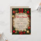 Trae la alegría festiva a sus invitados con esta invitación a la fiesta de Navidades de personalizable. El diseño envuelve los detalles de tu evento en una acogedora adopción de los clásicos motivos de las vacaciones. Una sinfonía visual de la temporada, esta invitación presenta un exuberante borde de verduras, luces de cuerda brillantes y adornos de oro y rojo meticulosamente detallados. Un hermoso arco rojo y un sutil fondo de madera completan el aspecto atemporal. Simplemente personaliza el texto para que los huéspedes conozcan los detalles de su celebración de vacaciones. Esta invitación es el primer destello perfecto de la magia de tus Navidades, marcando un tono festivo para una noche de alegría.