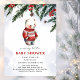 Prepárense para una cálida celebración en anticipación a la llegada de su pequeña con nuestra adorable acuarela Baby Boy Shower Invitation! Decorado con un pingüino adornado con un suéter rojo suave, enclavado entre ramas rústicas de pino con bayas rojas vibrantes, esta invitación desprende un acogedor encanto de invierno, lo que sumerge el escenario en una reunión alegre.